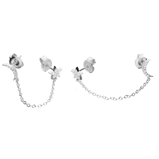 Sold outStar & Moon Chain Loop Studs (Pair)