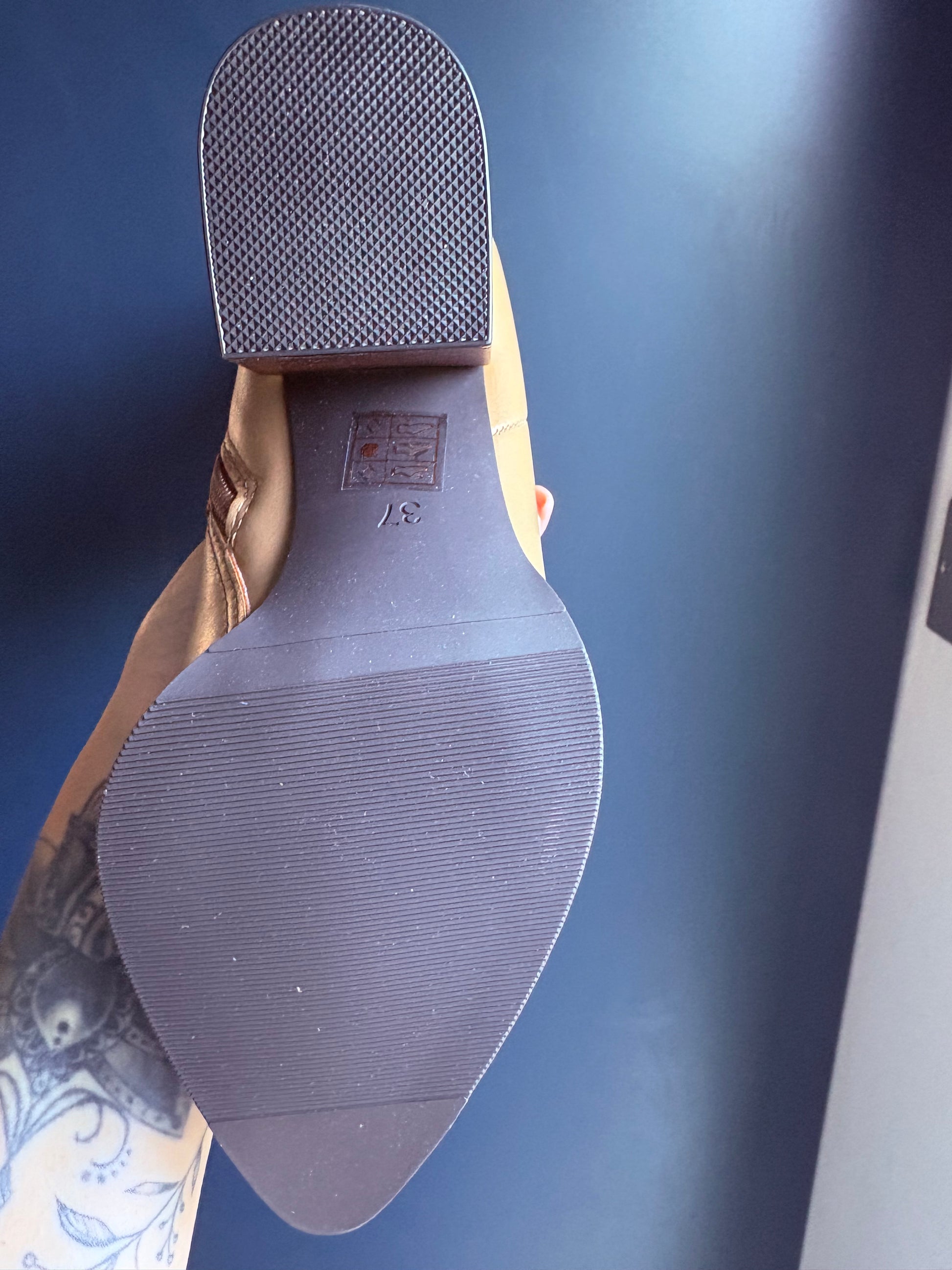 side zip for easy wear. The heel stands at approximately 9cm , adding a